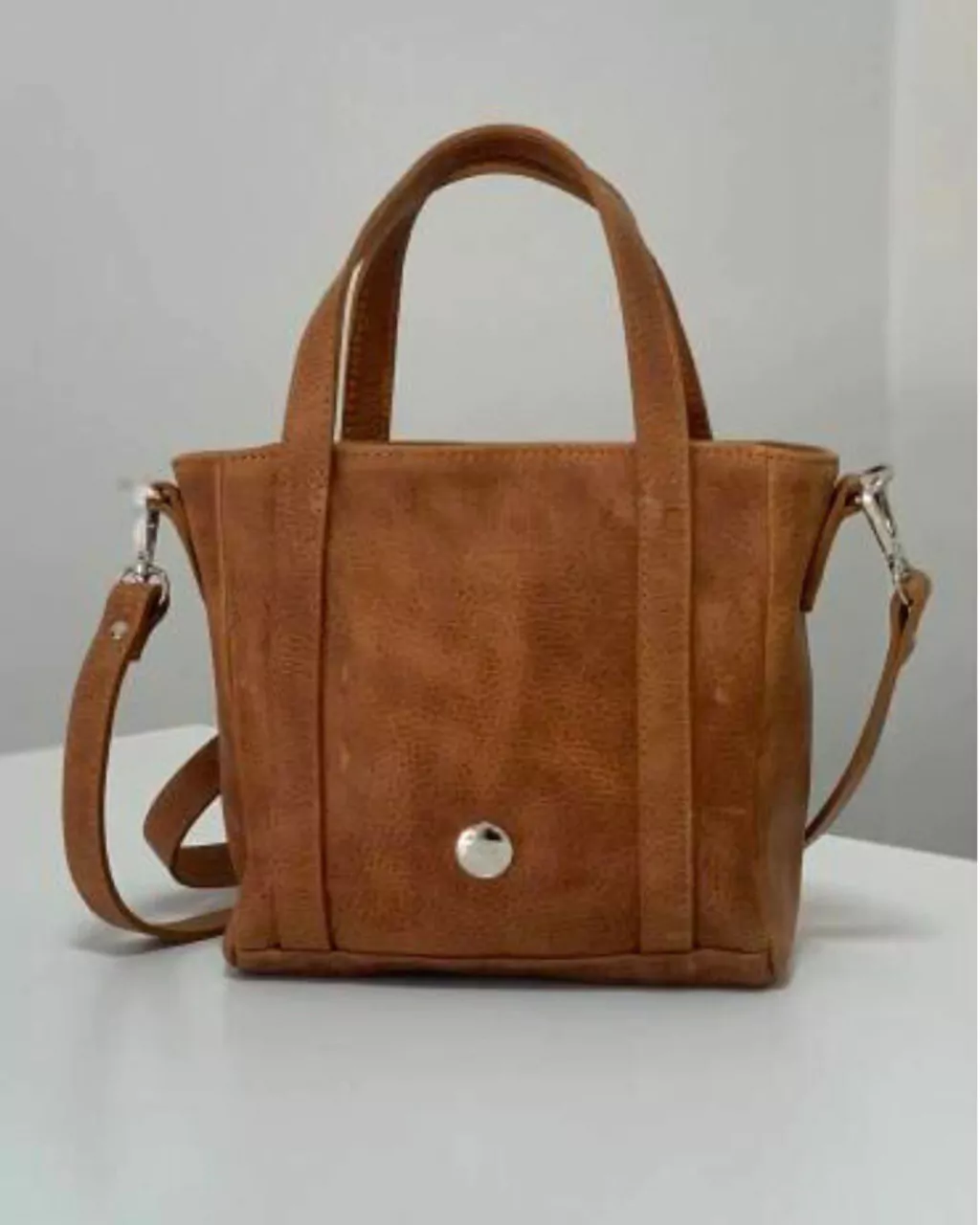 Bandolera realizada en cuero vacuno, con apertura con cierre.
